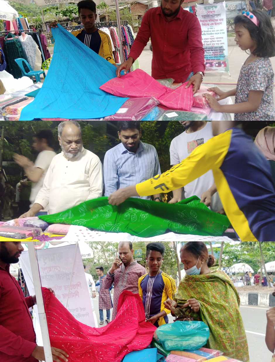 Swapnadhara Chayabrikkho is a ‘Learning and Earning Project’. ‘This project was participated in DNCC-Oikya holiday weekly market for two days to introduce to the people that Swapnadhara is an organization for underprivileged families’ children have been working for their formal education. ‘Nakshi Kantha’ is also a Handy-Craft project under the 'Learning and Earning Project'. Students come to work here for two or three hours a day to earn money to continue their education. And The products sell in different social markets, different social programs, and sell to its well-wishers. These products we sell at a minimum price. Our first job is to spread to the people about the activities of Swapnadhara that we are working with trust past 18 years.
