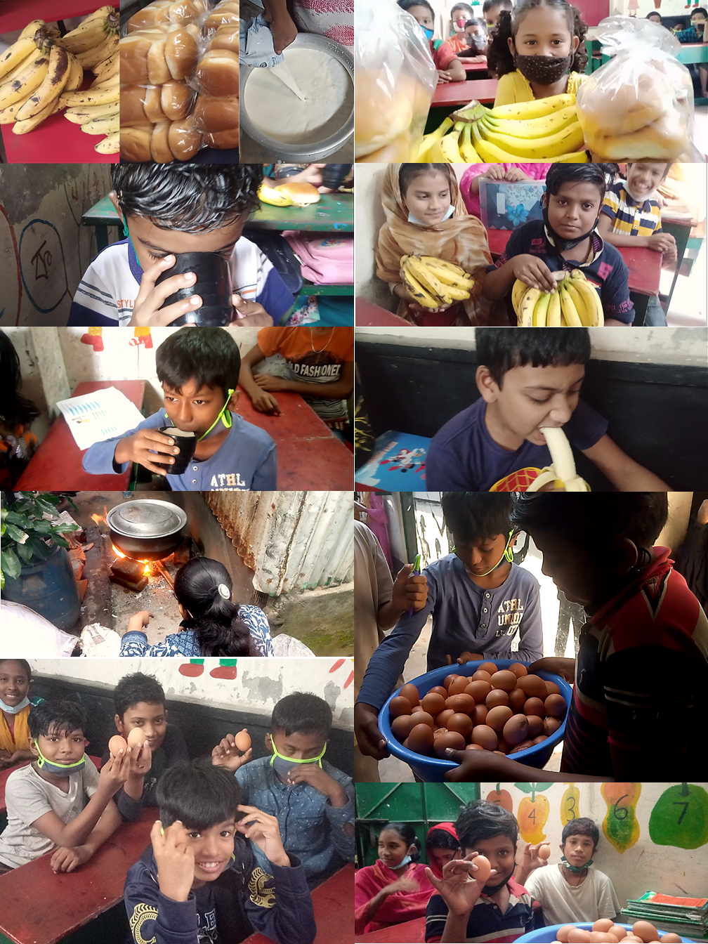 Because of the crisis of funds for food, now we are serving school tiffin to Pathshala students twice a week. One-time egg or milk and second-time fruits. This way we are maintaining students' tiffin.
